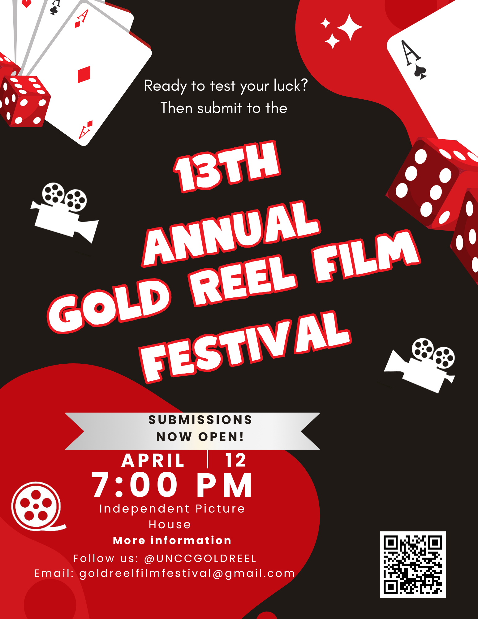 Join us in celebrating UNC Charlotte filmmakers and their films for the 13th Annual Gold Reel Film Festival.